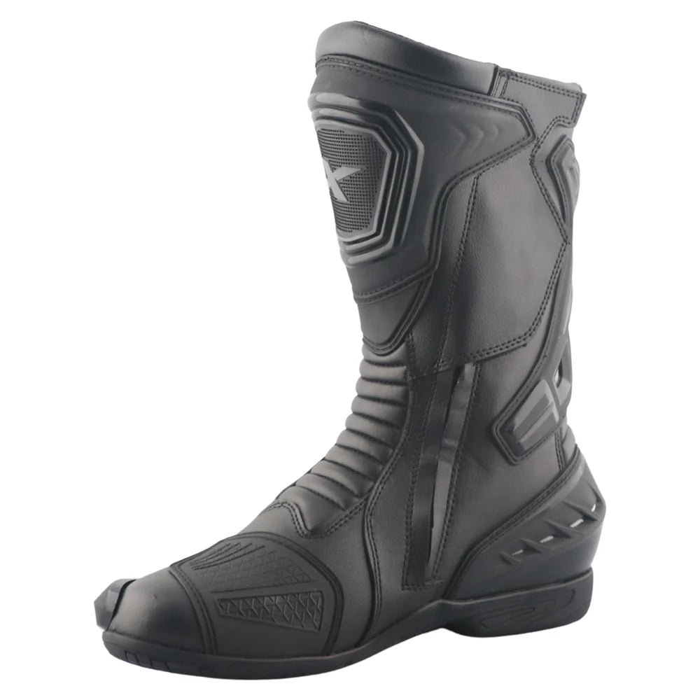 With a durable upcycled leather outer shell for Comfort and Fit, and Incorporating a host of advanced protective features. Also features an ergonomic for foot Shaping Exclusive rubber compound Sole for optimized levels of support and for good racing & high-speed impacts.