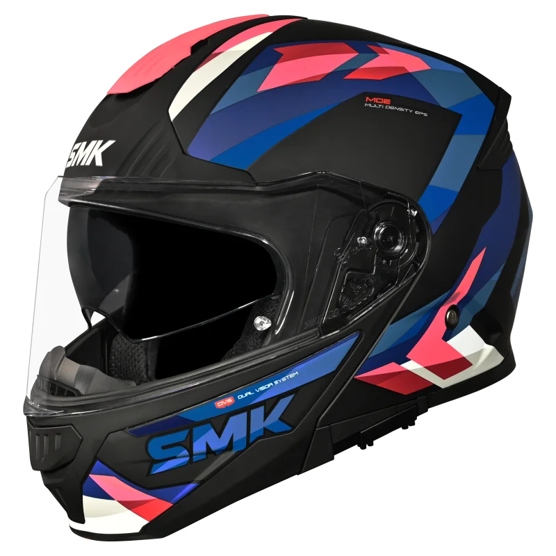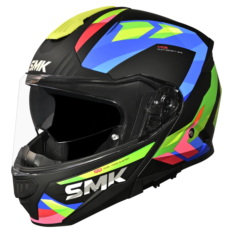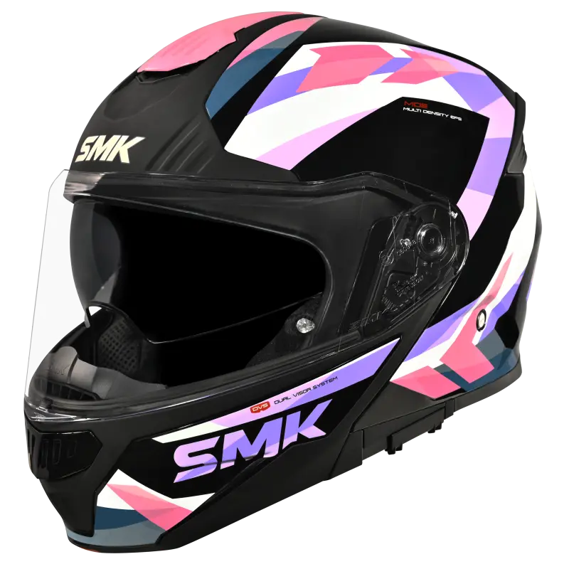 SMK Gullwing offers a complete range of features such as Internal Retractable Sun Visor, Wind Stop, and Pinlock®70 ready visor. Available in solid colors and high-visibility graphics, these helmets offer you complete Style & Safety!