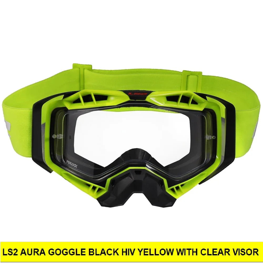 LS2 AURA GOGGLE BLACK HIV YELLOW WITH CLEAR VISOR