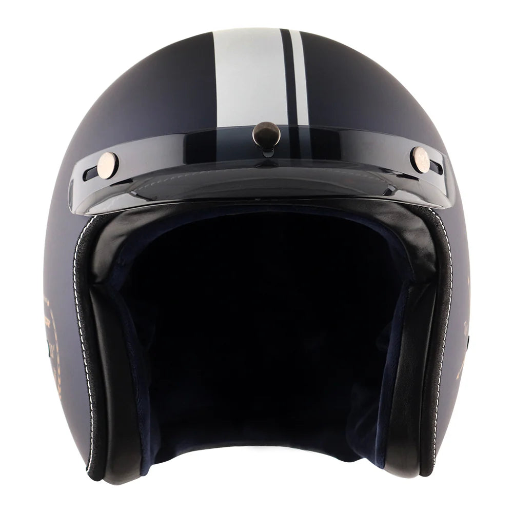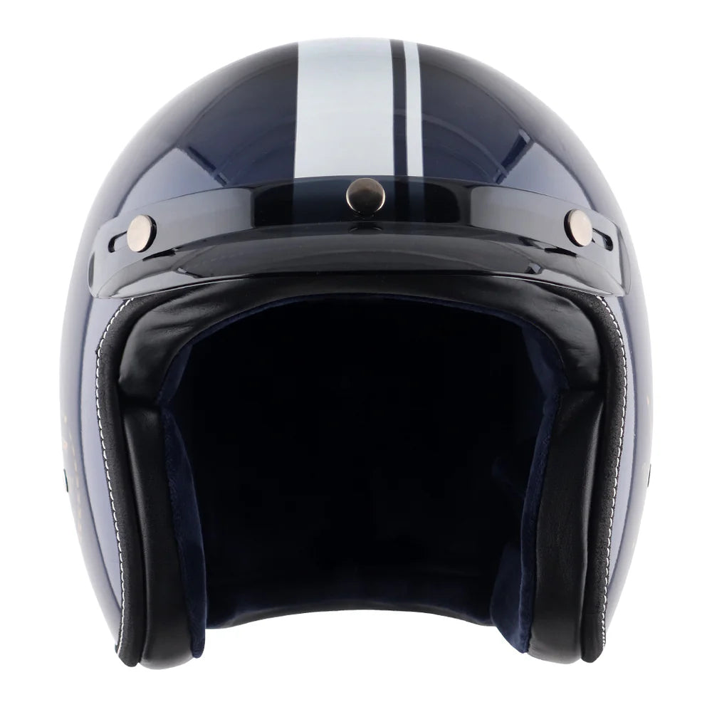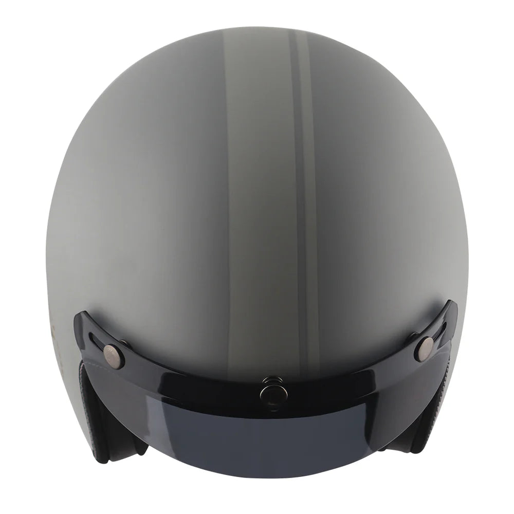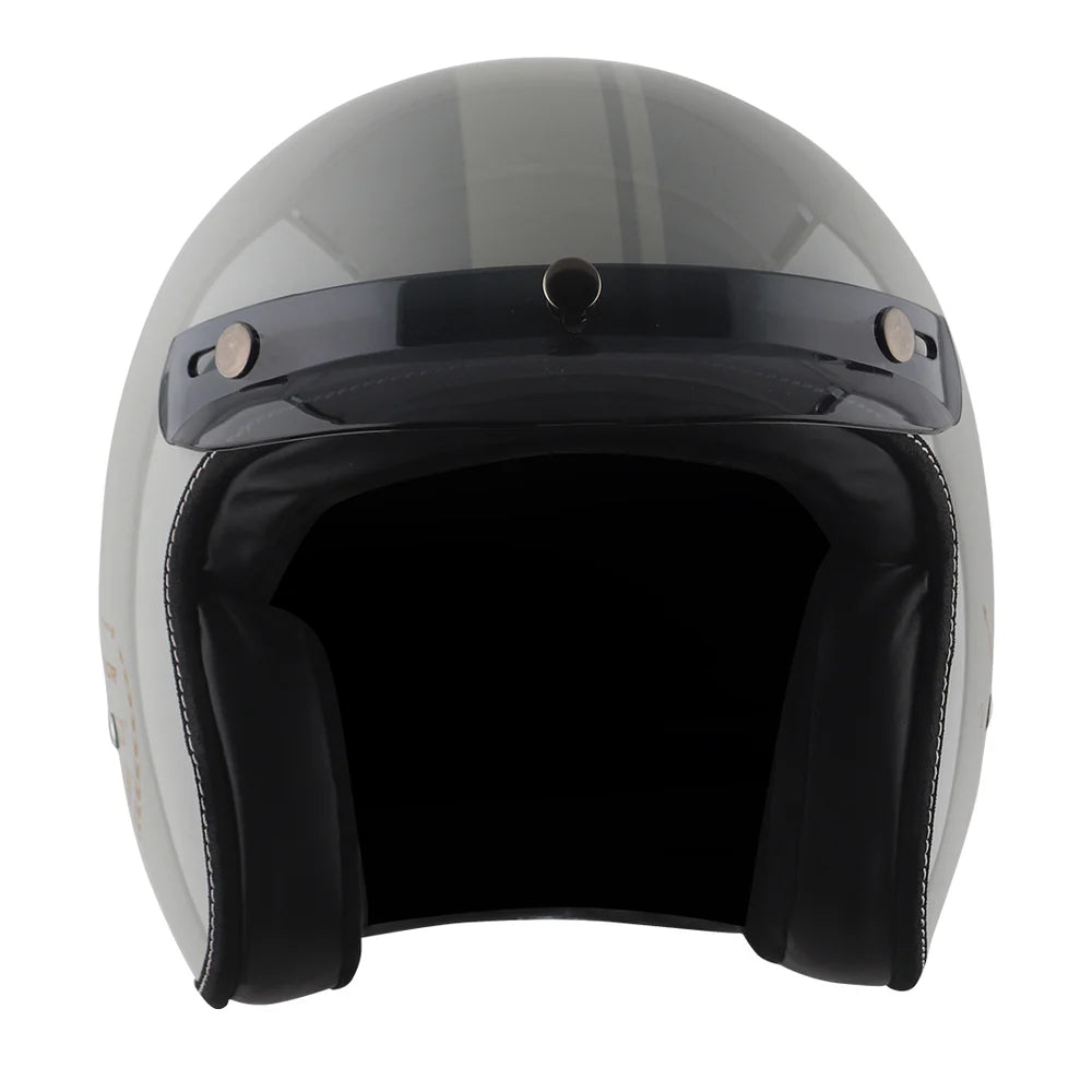 Retro Jet Euro Globe seamlessly blends classic design elements with modern-day safety features, making it the perfect choice for discerning gentlemen who appreciate both style and substance, with luxurious leather trim that exudes sophistication. To add on to the features it has extra-soft and swade interior lining. Available in an array of elegant colors that comes along with a shaded peak for a happy ride on a sunny day.