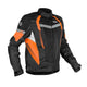 1.Fit: Sports touring fit.2.Maximum Ventilation: Strategically placed intake vents, 2 cross vents and 1 exhaust vent.3.Fit Modulation: Girth adjusters on waist, arms and cuffs.4.Ergonomic Trims: Accordion stretch panels on elbows and shoulder blades that flex with body movements.5.Cushioned Comfort: Soft Neoprene trims on collar and cuffs, prevent chafing of skin.6.Cargo Capacity: 3 pockets
